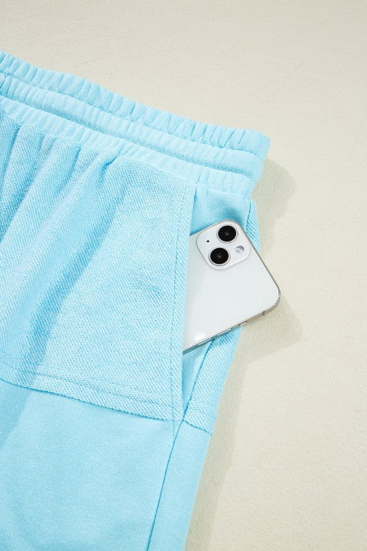 This plus size set features a stylish splicing design that elevates a casual look with modern flair. The raw hem detailing adds an intentional, edgy touch, enhancing its laid-back appeal. The pullover top ensures comfort and effortless styling for everyday wear, while the matching shorts provide a relaxed fit ideal for both lounging and running errands. Perfectly balancing trend-forward design with ease, this set offers versatile comfort without sacrificing style. Polyester/Cotton